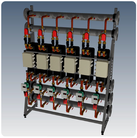 Modules are optionally supplied on frame with manifolds for easy connection to services.