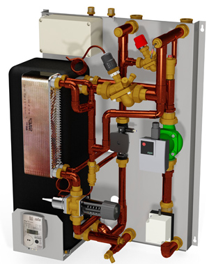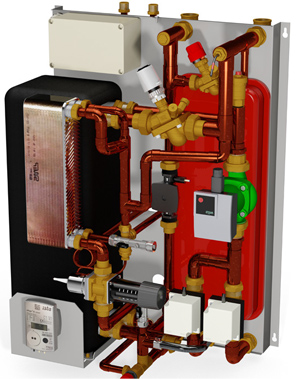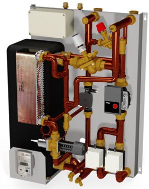 An extremely versatile self-contained, pre-plumbed and pre-wired Heat Interface Unit ideally suited to district heating or central boiler applications.